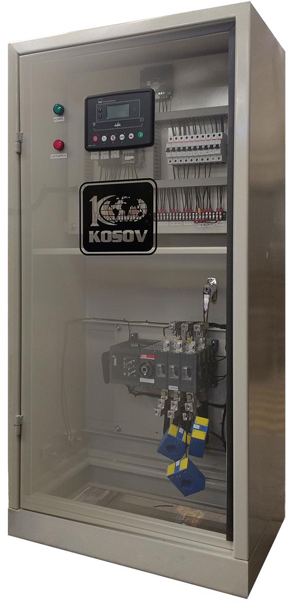 Utilizado controlar el encendido y apagado de una planta eléctrica de emergencia, así como para monitorear y activar las protecciones de la propia planta. Este tablero interactúa tanto con la red comercial eléctrica como con la de emergencia, realizando el cambio de fuente de energía de según las necesidades.